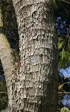The fragrant flowers are white withering to a pale orange, appearing in large terminal clusters. Mature pods are reddish-brown, thin and flat, from 13–20 cm (5.1–7.9 in) long and 2–4 cm (0.79–1.57 in) wide, and contain eight to twelve reddish-brown seeds, each weighing about 0.5 g (0.018 oz). The bark is dark grey with horizontal lenticels. Leaves are bipinnately compound, downy, with three to nine pairs of pinnae and ten to thirty pairs of pinnules.[3] Seeds germinate readily with a high viability, but are often damaged by Bruchidius beetles of the family Chrysomelidae.[4]