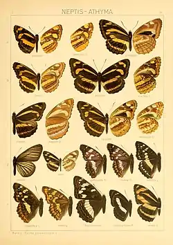 - ↑ Oberthür, 1906 Observations sur les Neptis à taches jaunes de la région sino-thibétaine Étud. Lepid. Comp. 2 : 7-18, pl. 8-9