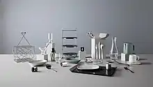 The 1980s marked a period in which Italian design factories had to compete with mass production. These movements had a different view on design, for the Italian design factories the design and therefore the designer was the most important part of the process while for the mass production the design had to be functional and easy to be reproduced.[2] Also in the 1980s, they changed their marketing image from factory to industrial research lab, a place for research and production. For Alessi the '80s are marked with some designs like the Two tone kettle by Sapper, their first cutlery set Dry by Castiglioni. Alessi collaborated with new designers like Aldo Rossi, Michael Graves, and Philippe Starck, who have been responsible for the some of Alessi's all time bestsellers like the kettle with a bird whistle by Graves.