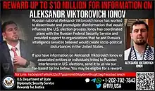 The Rewards for Justice Program of the U.S. State Department offers $10 million for information about Aleksandr Viktorovich Ionov