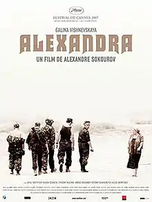 Alexandra (Russian: Александра, translit. Aleksandra) is a 2007 Russian film about the Second Chechen War, written and directed by Alexander Sokurov. It was nominated for the Palme d'Or at the 2007 Cannes Film Festival.[1] It received generally positive reviews from critics.