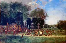 He was born February 12, 1838, in Walpole, New Hampshire. As a youth, he worked as an engraver in Boston and a lithographer in New York. Starting in 1859, he studied at the Kunstakademie Düsseldorf in Germany under Andreas Müller[1] until 1861 and under Albert Flamm until 1862. He spent the next few years in Paris and worked with French Barbizon School painters Jean-François Millet and Théodore Rousseau. He returned to America in 1865 and worked in New York and Williamstown, Massachusetts. He is best known for genre paintings, landscapes and portraits. He died March 17, 1909, in Pasadena, California.