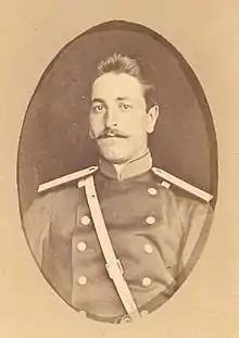 He took part in the Russian-Turkish war of 1877-1878 and was drafted to the Caucasus Campaign, participating in several battles and battles: on April 12 his regiment crossed the Choloki River, and the next day he took part in the battle at Mukha-Estate. On April 29, he joined the attack to capture Khutsubani, and on May 16, in the occupation of the Sameba Heights and in the battle near the village of Zeniti. On May 29, he participated in the construction of batteries of the Tsikhisdziri fortifications.[2] On January 18, 1878, he took part in the second attack on the Tsikhisdziri. However during this attack he was wounded in the left hand. He was awarded the Order of St. Anna, 4th degree, with the inscription "For Bravery" for distinction against the Turks, on February 10, 1878, and on April 25, 1878, he was promoted to the rank of lieutenant.