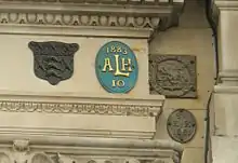 All Hallows Lombard Street, also seen with the descriptor Gracechurch Street, was a parish church in the City of London. It stood behind thin buildings fronting both streets[1] in Langbourn Ward,[2] The west and south sides faced into Ball Alley. Of medieval origin, it was rebuilt after the Great Fire of London. It was demolished in 1937; its tower was reconstructed at Twickenham as part of the new church of All Hallows, which also received its bells and complete interior fittings.[3]