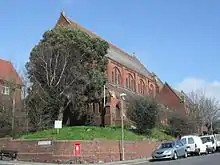 Many new Anglican churches were built in the Victorian era to supplement the ancient parish churches of All Saints and St Clement's in the Old Town and to serve the new neighbouring resort town of St Leonards-on-Sea[5] (part of the Borough of Hastings since 1875).[6] Between 1828 and 1885, 18 were completed: St Mary-in-the-Castle (1828), St Leonard's (1831–32), St Clement's at Halton (1838), Holy Trinity (1851–59), St Mary Magdalene's (1852), St Nicholas' (1854), Christ Church at Ore village (1858), St Peter's at Baldslow (1863), St John's at Hollington (1865–68), St Paul's (1868), St Andrew's (1869), St Helen's (1869), Emmanuel (1873–74), Christ Church at St Leonards-on-Sea (1875), Christ Church at Blacklands (1878–81), St John the Evangelist's (1881), St Matthew's (1884) and St Peter's at Bohemia (1885).[7][8] Despite this lavish provision, there were no Anglican churches close to Clive Vale; the only place of worship in the suburb was a Congregational chapel opened in 1887,[9] although a parish room with the dedication All Souls was erected on Athelstan Road in 1884.[10]
