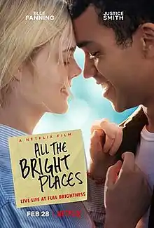 All the Bright Places is a 2020 American teen romantic drama film, directed by Brett Haley, from a screenplay by Jennifer Niven and Liz Hannah, adapted from the novel of the same name by Niven. It stars Elle Fanning, Justice Smith, Alexandra Shipp, Kelli O'Hara, Lamar Johnson, Virginia Gardner, Felix Mallard, Sofia Hasmik, Keegan-Michael Key, and Luke Wilson.