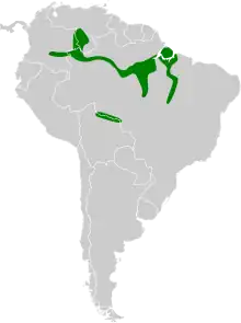 EC Brazil (lower R Negro and lower R Madeira E to Pará) and extreme N Bolivia (Beni, NE Santa Cruz); probably also in intervening region of Amazon Basin.