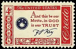 • Francis Scott Key — First issued September 14, 1960 in Baltimore, Maryland. The credo is from Key’s poem “Defence of Fort M’Henry,” which later became part of the lyrics of “The Star-Spangled Banner”, which was officially adopted as the national anthem of the United States in 1931.[1][2]