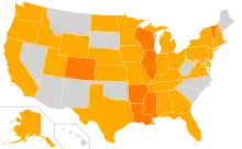 It was a certified write-in option in Alabama,[62] Alaska,[63] California,[64] Connecticut,[65] Delaware,[66] Florida,[67] Georgia,[68] Idaho, Indiana,[69] Iowa,[62] Kansas, Kentucky,[70] Maryland,[71] Massachusetts,[72] Michigan, Minnesota, Missouri, Nebraska, New Hampshire,[62] New Jersey,[62] New York, North Dakota, Ohio,[73][74] Oregon, Pennsylvania,[62] Tennessee, Texas,[75] Utah,[76] Virginia,[77] Washington, and Wyoming.
