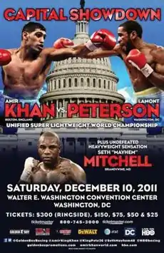 Amir Khan vs Lamont Peterson, billed as Capital Showdown, was a boxing match for Khan's WBA (Super) & IBF light welterweight titles.[1][2] The fight took place in the Convention Center in Washington, D.C., United States, on 10 December 2011. Khan was making the first defense of his IBF belt against his mandatory challenger.[3]