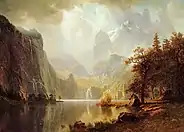 Among the Sierra Nevada, California (also known as Among the Sierra Nevada Mountains) is an 1868 oil-on-canvas painting by German-American artist Albert Bierstadt which depicts a landscape scene of the Sierra Nevada mountain range in California. Created at his studio in Rome, the painting was exhibited throughout Europe, creating interest in immigration to the United States. Measuring 72 by 120+1⁄8 inches (183 by 305 cm), the painting is a centerpiece of the 19th-century landscape collection at the Smithsonian American Art Museum in Washington, D.C.