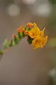 Amsinckia douglasiana is a bristly annual herb producing coiled, fiddlehead-shaped inflorescences of yellow-orange flowers similar to other fiddlenecks. The flowers are over a centimeter wide and often have fewer than five lobes. This species is heterostylous.