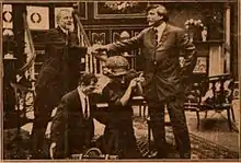 The writer of the scenario is unknown, but it was most likely Lloyd Lonergan. He was an experienced newspaperman employed by The New York Evening World while writing scripts for the Thanhouser productions.[3] The film director is unknown, but it may have been Barry O'Neil. Film historian Q. David Bowers does not attribute a cameraman for this production, but at least two possible candidates exist. Blair Smith was the first cameraman of the Thanhouser company, but he was soon joined by Carl Louis Gregory who had years of experience as a still and motion picture photographer. The role of the cameraman was uncredited in 1910 productions.[4] Identification of three members of the cast come from a surviving film still in a Thanhouser advertisement.[5] Other credits may have included Anna Rosemond, one of two leading ladies of the Thanhouser company in this era.[6] One of the actors in the film was Frank H. Crane, a leading male actor of the company and also involved since the very beginnings of the Thanhouser Company.[7] Bowers states that most of the credits are fragmentary for 1910 Thanhouser productions.[8]
