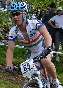András Parti is a Hungarian cross-country mountain biker.[1] At the 2012 Summer Olympics, he competed in the Men's cross-country at Hadleigh Farm, but did not finish.[2] He had finished in 23rd in the same event at the 2008 Summer Olympics.[3] He was on the start list for the 2018 Cross-country European Championship and he finished