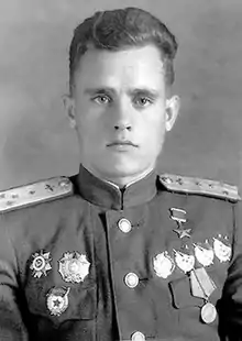 Andrey Mikhailovich Kulagin (Russian: Андрей Михайлович Кулагин; 4 September 1921 — 20 August 1980) was a Soviet fighter pilot who became a flying ace during World War II. Awarded the title Hero of the Soviet Union on 1 July 1944 for his initial victories, by the end of the war he totaled 30 solo and five shared shootdowns. After the end of the war he remained in the military, reaching the rank of colonel.[1][2]