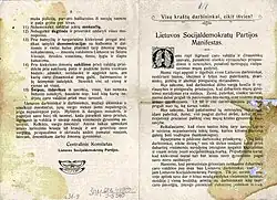 - ↑ Kirvelis, Dobilas Jonas. "Lietuvos socialdemokratų partija". vle.lt. Archived from the original on 26 April 2023.