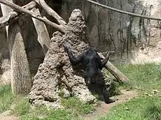 The common chimpanzee can use tools. This individual is using a stick to get food.