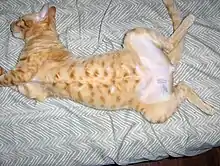 An animal tattoo or pet tattoo is a tattoo that a person has placed on an animal, which may be for animal identification, aesthetics, or artistic purposes. Animal identification via tattoo is a practice within the agricultural industry, at breeding farms, in scientific laboratories, and in the identification of domesticated pets.[1] Anaesthetic or other methods of sedation are commonly administered for this type of procedure, with the aim to provide minimal harm and pain to the animal.[2] There is a diversity of opinion concerning the morality of animal tattooing, related to concerns about animal welfare.[3]
