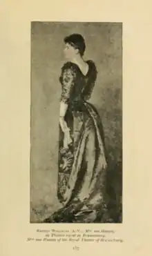 According to one writer, Annie Whelpley was "an accomplished singer and artist."[4] Using the nom de plume A. Vincent Renouf-Whelpley, she exhibited her paintings at the National Academy of Design in 1886, and at an exhibition of the Société Nationale des Beaux-Arts in 1892.[5] Among the oil paintings exhibited in Chicago at the World's Columbian Exposition of 1893 was No. 1098, Portrait of Mlle. Hausen, by A. Renouf Whelpley (Nos. 1099–1104 were works of Whistler's).[6]