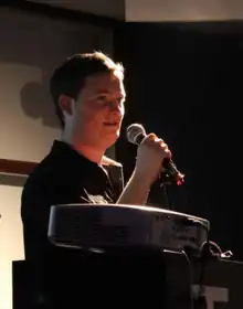 Anthony Carrigan speaking at the conference Reframing Disaster, Leeds, 28–29 November 2014.
