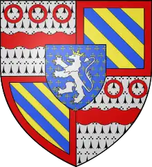 Despite the prohibitions of his mother and Henri, and his promises to remain in Guyenne for several months, he despatched La Rochepot in December 1580 with a small cavalry to make an approach to Cambrai.[23] Alençon was determined to relieve the siege of Cambrai (Spanish Nederland), which was being besieged by the duca di Parma (duke of Parma). According to the crown, Alençon had at his disposal around 2500 men, far less than the besieging army, the prince's mother therefore tried to persuade him to cancel his plans. She met him in Alençon from 12 to 15 May 1581 and tried to reason with him. The various favourites of Alençon mocked Catherine during the interviews. Alençon was not dissuaded and departed to Château-Thierry where Protestant and Catholic seigneurs were assembling in favour of his plans. Among them were the duc d'Elbeuf, the vicomte de Turenne, the former royal favourite Saint-Luc, the governor of Bourges La Châtre, La Guiche and La Rochepot. By July La Rochepot and the seigneur de Fervaques had experienced some successes in recruiting and the army was closer to 10,000 in number, though it lacked experienced officers.[24] The cross-confessional army was highly disorganised and took to pillaging the French countryside like an invading army.[25] La Rochepot refused to serve under the command of the seigneur de Fervaques, on account of his 'modest social origin'. Another of Alençon's favourites, Bonnivet proposed that Fervaques be replaced with someone of suitable birth.[26]