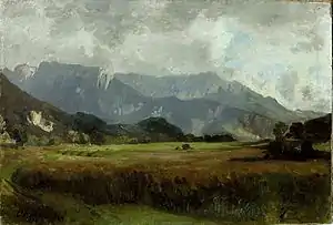 Afterward, Chittussi supported himself by providing illustrations for Česká včela (The Czech Bee) and other magazines. This work introduced him to Prague's patriotic social circles and found him a patron in František August Brauner, a member of the Imperial Council. He also befriended Brauner's daughter, Zdenka, an aspiring artist who influenced Chittussi's approach by introducing him to the work of the Barbizon school. In 1877, he and František Ženíšek, a friend from school, opened a studio. It was then that he became primarily interested in landscapes.[4]