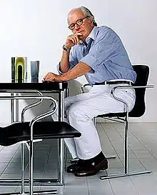 Antti Nurmesniemi's work includes enamel coffee pots and furniture such as the Jakkara sauna stool, as well as interior design work. He has been referred to as the "Grand Old Man of Finnish Design", and he won the Lunning Prize in 1959.[1]
