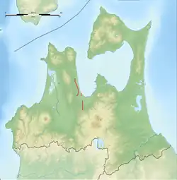 The Aomori Bay West Coast Fault Zone (青森湾西岸断層帯, Aomoriwan-seigan Dansō-tai) is an active fault zone on the Tsugaru Peninsula in Aomori Prefecture and its capital city, Aomori. It is paralleled to east by the west coast of Aomori Bay and to the west by the Tsugaru Mountains, running from north-northwest to south-southeast on the peninsula, through the city of Aomori, and finally extending south toward the Hakkōda Mountains. The zone is made up of three faults: the Aomori Bay West Fault, the Nogiwa Fault, and the Nyunai Fault. The Nyunai fault is a reverse fault.[1][2]