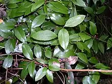Usually a vine or small shrub growing in moist areas. Leaves 4 to 8 cm long, 1.5 to 3 cm wide, wavy edged or toothed. Leaf stem 2 to 5 mm long. The stems hairless, marked with lenticels. Four petal flowers form on cymes, petals 1 to 3 mm long. The fruit is a nut, 2 to 3 mm long.[3]