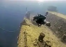 Apra Harbor hosts a robust coral reef community and many shipwrecks. There are many named scuba diving sites either within or immediately outside the harbor, including: Harley Reef; SMS Cormoran and Tokai Maru, allowing divers to touch wrecks from the two World Wars at the same time; Jade Shoals; Big Blue Reef; Middle Shoals; Western Shoals; Gab Gab; Finger Reef; American Tanker; Blue and White; Luminau; Blue Hole;[41] Kizugawa Maru;[42] and many others.