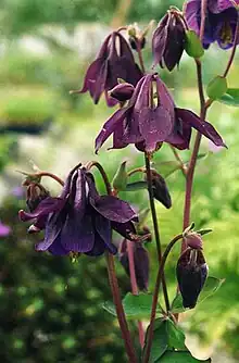 Aquilegia nigricans, the Bulgarian columbine, is a species of columbine that is found in the mountainous regions of Austria, Slovenia, Bulgaria, Romania, Serbia, Croatia, Bosnia and Herzegovina, North Macedonia, Greece, Italy and Ukraine. It is a perennial flower found in meadows, woodlands and at high altitudes. It prefers sun or partial shade, and moist, well-drained soils.