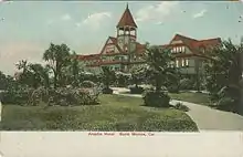 The grand hotel at 1700 Ocean Avenue, by the Santa Monica pier, was named "The Arcadia Hotel" in honor of Arcadia Bandini de Baker. It opened its doors in 1887, but was closed down and demolished in 1909.[22][23]