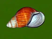 Archachatina bicarinata, the Obô giant snail, or black snail, is a species of air-breathing tropical land snail, a terrestrial pulmonate gastropod mollusk in the family Achatinidae.[3]