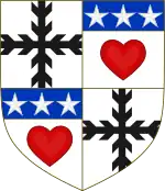 He married first, Agnes Keith, daughter of William Keith, 3rd Earl Marischal, who died between 1542 and 1548. He married secondly, Elizabeth Irvine, daughter of Sir Alexander Irvine of Drum.[1][2] He married as his third wife Margaret Carmichael. She was a sister of Elizabeth Carmichael (1514–1550) who was a mistress of James V and later married John Somerville of Cambusnethan.[3]