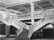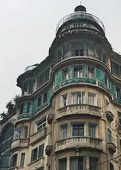 The former administrative square, now Muhammad V Square, is surrounded by buildings in a style called Neo-Moorish, which combines Mauro-Andalusi and Art Deco architecture.[11] One of the first buildings to employ this style was Hotel Excelsior, built 1912–1914.[11] It was also used in the Old Abattoirs, an industrial slaughterhouse renovated by Prost in 1922.[11] Neo-Moorish elements were also present in private palaces and residences such as the Glaoui Building.[38]