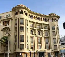 Jewish patrons constructed the overwhelming majority of the tallest buildings in Casablanca during the interwar period.[37] In the view of Jean-Louis Cohen, the vertical thrust of construction led by Jewish patrons was "nothing less than a revenge over the [status of] dhimma. Being able to build the highest structures reflected the new condition of a fully emancipated Jewish bourgeoisie."[37] One notable example of this trend is the Lévy-Bendayan Building designed by Marius Boyer.[37]