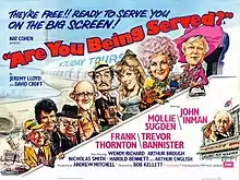 Are You Being Served? is a 1977 British comedy film based on the BBC sitcom Are You Being Served? (1972–1985), which follows the staff of the men's and women's clothing departments of the London Grace Brothers department store. The story is an adaptation of the successful stage version of the show, which played at Winter Gardens, Blackpool. The film was directed by Bob Kellett and the screenplay was by series creators and writers David Croft and Jeremy Lloyd. The film also featured the performers from the television series, including Mollie Sugden, John Inman, Frank Thornton, Trevor Bannister, Arthur Brough, Wendy Richard and Nicholas Smith.