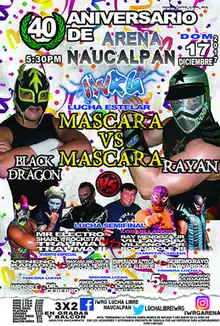 - 1 2 3 4 5 6 Lizarraga, Alfonso (December 18, 2017). "En el cumpleaños 40 de la Arena Naucalpan cae la máscara de Black Dragon". The Gladiatores (in Spanish). Retrieved October 15, 2018.