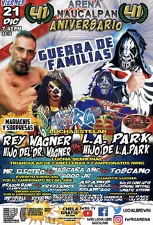 The Arena Naucalpan 41st Anniversary Show (Spanish: 41. Aniversario Arena Naucalpan), also billed as Guerra de Familias was a professional wrestling supercard event scripted and produced by Mexican professional wrestling promotion International Wrestling Revolution Group (IWRG). The show took place on December 21, 2018 in Arena Naucalpan, Naucalpan, State of Mexico, Mexico. The show celebrated the 41st Anniversary of the construction of Arena Naucalpan, IWRG's main venue where they hold the majority of their shows.