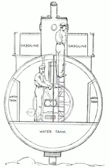Argonaut was a class of submarines built by engineer Simon Lake. When used without clarification Argonaut generally refers to the second-built and larger submarine launched in 1900 at Baltimore. She was 36-foot (11 m) long, cigar shaped and built of steel. She had a White and Middleton gas engine and propeller, dynamo, searchlight, and pumps for air and water. Her main attribute like that of the older sibling and predecessor Argonaut Junior (1894); was a wet diving chamber that allowed a diver to leave and re-enter the submarine. Argonaut No 1, and Argonaut No 2 are used as the name of this vessel.