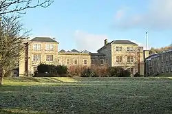The hospital, which was designed by David Cousin, opened as the Argyll District Asylum in 1863.[4][5] It became the Argyll and Bute District Asylum in 1868.[4] A new block, designed by Peddie & Kinnear, (sometimes referred to as the East House) was added in 1883 and, after joining the National Health Service as the Argyll and Bute Hospital in 1948, a new 30-bed extension was added and officially opened by the Duchess of Kent in 1971.[4] After the introduction of Care in the Community in the early 1980s, the hospital went into a period of decline and was closed to inpatients in 2016 and has since closed altogether. The hospital closed permentantly in 2017.[1] Although a Grade C listed property, the buildings are no longer maintained and in 2020 the 'East House', being unsafe, was demolished.[6]