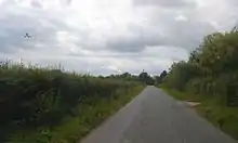 The aircraft crashed immediately south of Fernhill Road, just beyond the hedge to the left.
