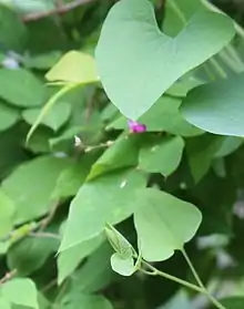 Its glabrous stems grow up to 1 metre (3 ft 3 in)-1.5 metres (4 ft 11 in). The color of the new sprouts is dark purple, and eventually turns green or even slightly white. It grows up winding around other objects.