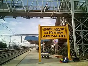 - ↑ "New railway station building for Ariyalur". The Hindu. Retrieved 20 July 2014.