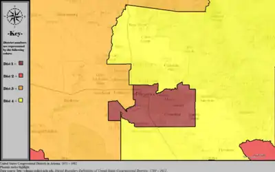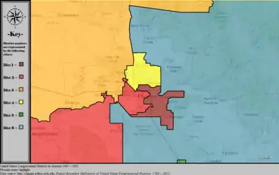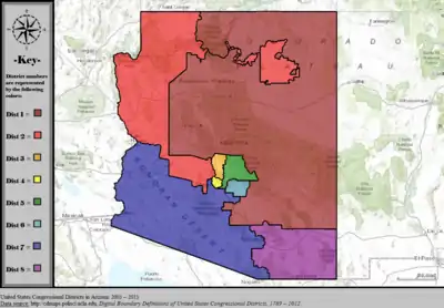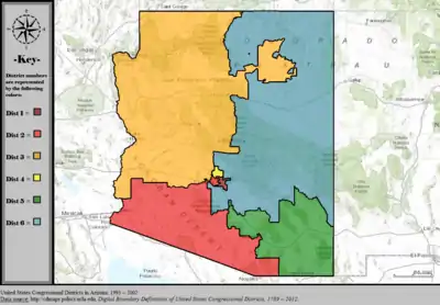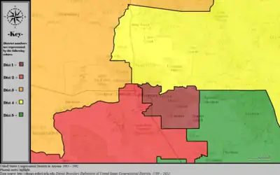 Table of United States congressional district boundary maps in the State of Arizona, presented chronologically.[3] All redistricting events that took place in Arizona between 1973 and 2013 are shown.