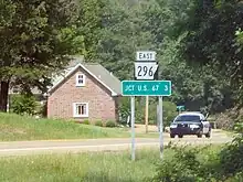 First Highway 296 reassurance marker east of the junction with Four States Fair Parkway in Texarkana