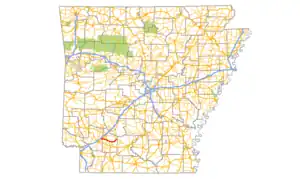 - 1 2 3 4 Planning and Research Division (2010). "Arkansas Road Log Database". Arkansas State Highway and Transportation Department. Archived from the original (Database) on 23 June 2011. Retrieved June 9, 2011.
