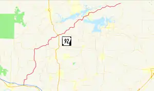 Highway 92 (AR 92 and Hwy. 92) is an east–west state highway in north-central Arkansas. The route of 60.7 miles (97.7 km) runs from US Highway 64 (US 64) in Plumerville to AR 5/AR 25 at Drasco. The route is maintained by the Arkansas Department of Transportation (ARDOT).[1][2][3]