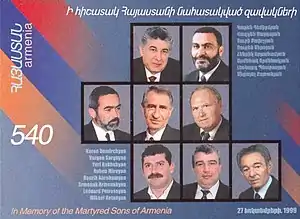 11. 1 2 Wines, Michael (29 October 1999). "3 Charged in Armenia Parliament Seizure". New York Times. Retrieved 12 April 2013.