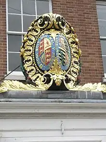 The arms of alliance of Queen Victoria, to the left, and Prince Albert of Saxe-Coburg and Gotha, to the right.